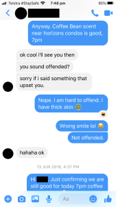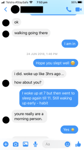 I started a normal chat. Where are you from? Long time in Sydney? Bla bla.