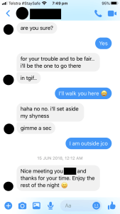 The date went nice and smooth. I just made her talk about herself while applying light kino here and there. She was a call-centre agent who used to work for eBay Australia. The funny thing is, she was quite familiar with Aussie slang because, in her words, they specifically trained them in that. She’s been to TGI Friday’s before as it was a favourite place for their corporate outings.