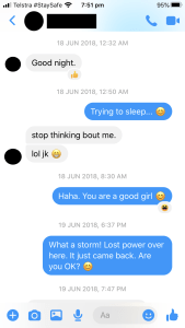 After a few more message exchanges she dropped a bomb. She was still married. She left Philippines six months ago and dropped her kids with her estranged husband there to start a new life of adventure in Australia.