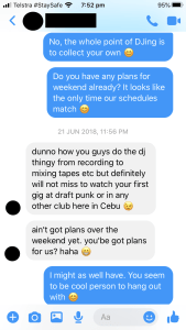 She still messaged me back that night. The next day the storm came over Cebu City so I sent her a ping. She was still messaging back. I didn’t mind a repeat so I kept messaging her.